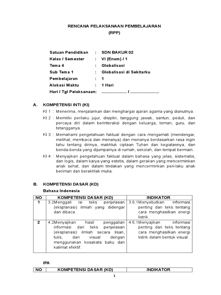 6.4 Rpp Kelas Vi Tema 4 Globalisasi [9n0kmz7p2p4v]