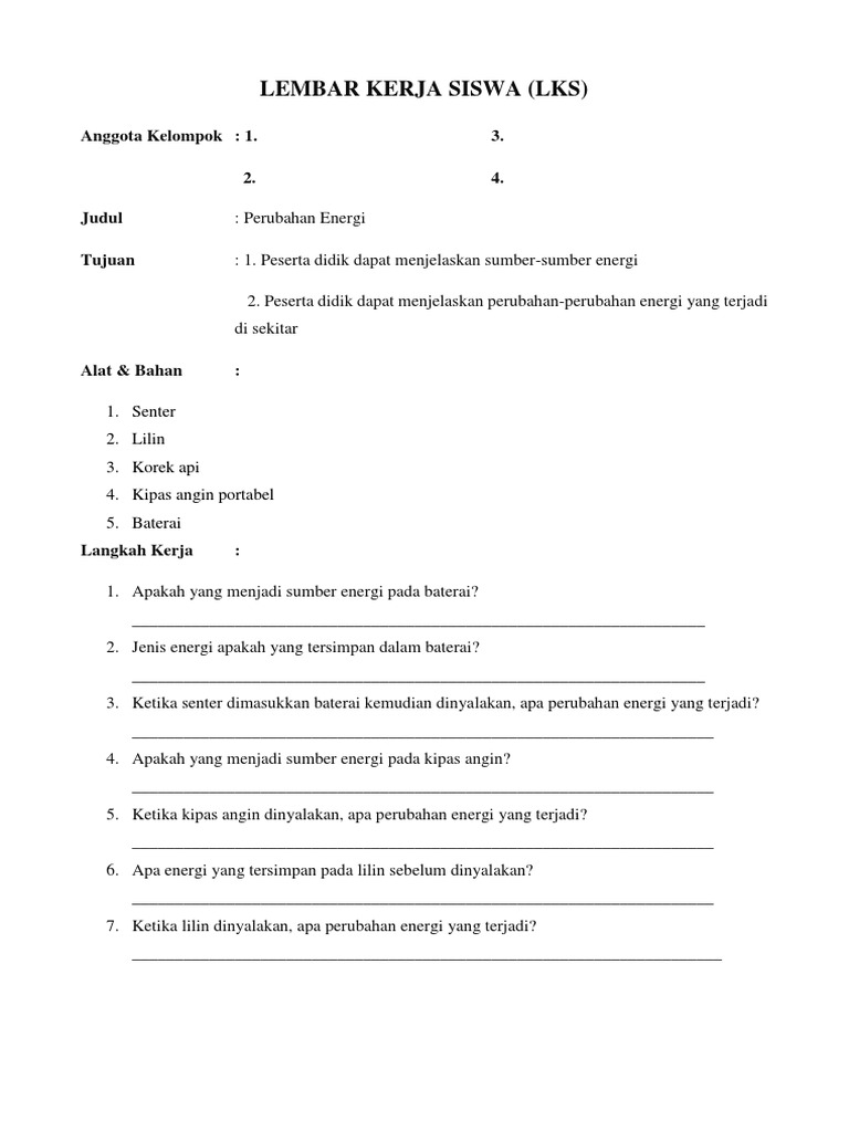 Kunci Jawaban Percobaan Perubahan Energi Kelas 4 - SDonline