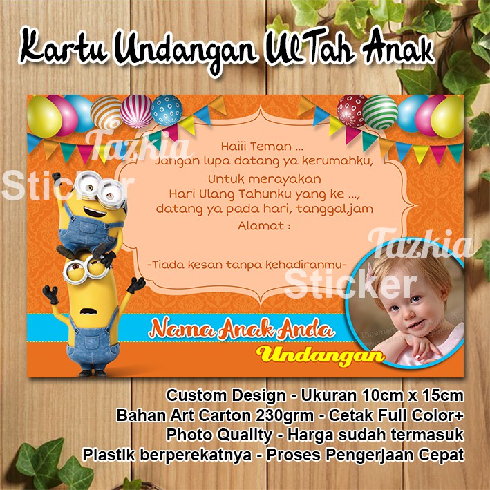 Jual Kartu Undangan Ulang Tahun Anak (Custom) Pakai Foto - Kota Magelang - Tazkia Sticker | Tokopedia