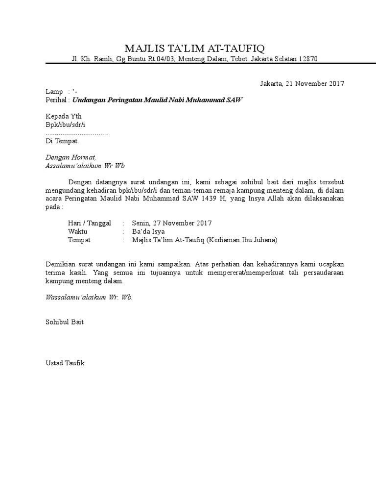 DOC) Surat Undangan Maulid Nabi Muhammad Saw | yulius gocar2017 - Academia.edu
