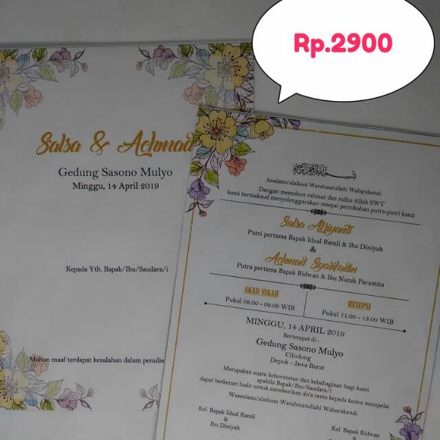 Pesanan Undangan Syifa & Eko ] Single Hard Cover Bahan Kertas Art Paper + Laminasi Doff Quantity 400 x Rp.9,500 Untu… | Undangan pernikahan, Undangan, Pernikahan