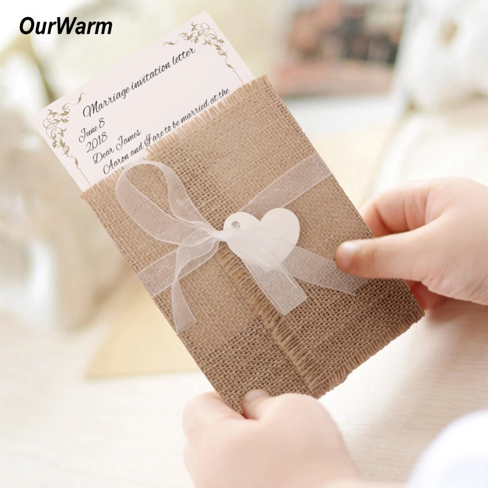 Ourwarm 10 Pcs Pedesaan Chic Pernikahan Undangan Vintage Goni Pernikahan Undangan Kartu dengan Amplop Bayi Shower Pesta Hadiah|Kartu & Undangan| - AliExpress