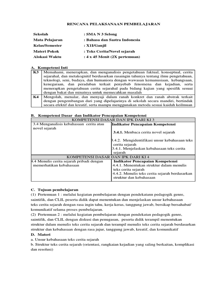 PDF) RENCANA PELAKSANAAN PEMBELAJARAN (RPP) TEKS CERITA SEJARAH …