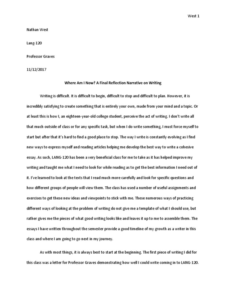 Reflection essay - Grade: A - EH 101 English Composition I - StuDocu