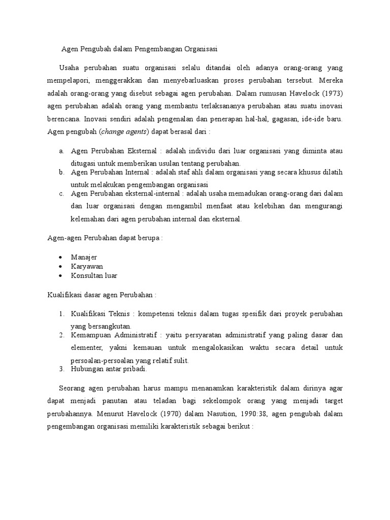 Agen Pengubah dalam Pengembangan Organisasi Usaha perubahan suatu organisasi | Course Hero