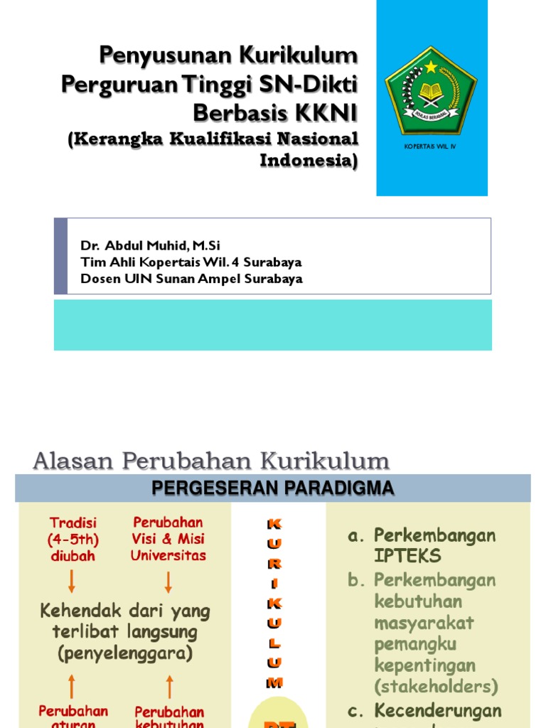 Penyusunan Kurikulum Perguruan Tinggi SN-Dikti Berbasis KKNI (Kerangka Kualifikasi Nasional Indonesia) KOPERTAIS WIL. IV Dr. Abdul Muhid, M.Si Tim Ahli. - ppt download