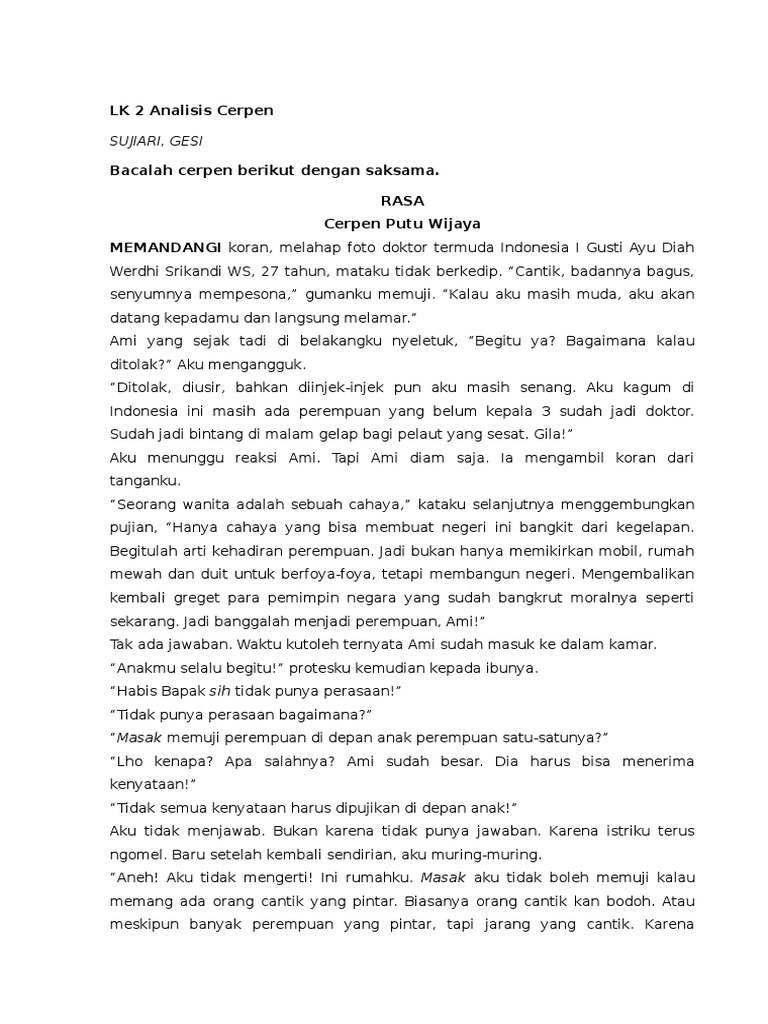 DOC) Potret Wanita Dalam Cerpen “Rasa” karya Putu Wijaya | Achmad Syuja’i - Academia.edu