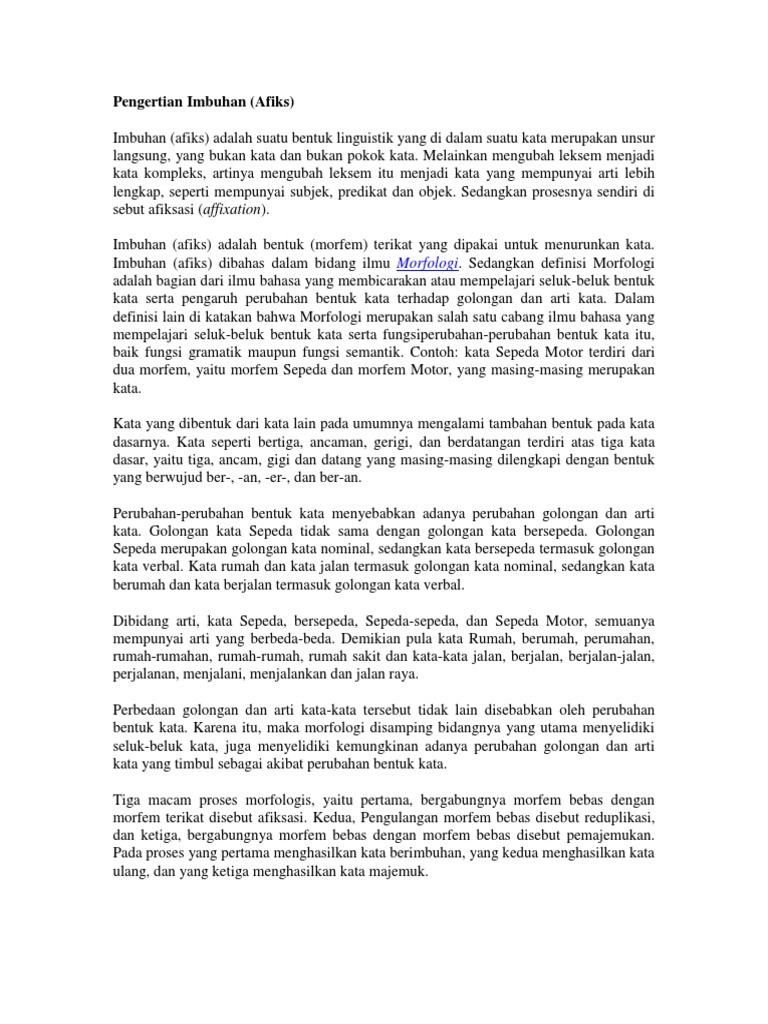 Pengertian Imbuhan (Afiks)