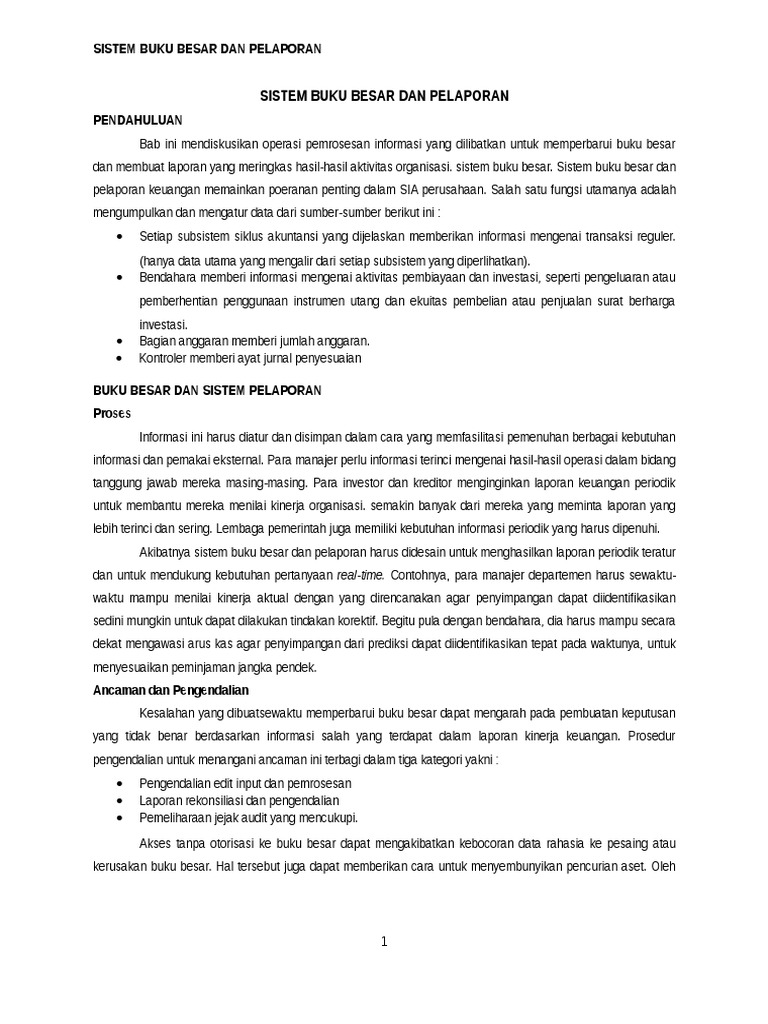 SISTEM BUKU BESAR DAN SISTEM PELAPORAN
