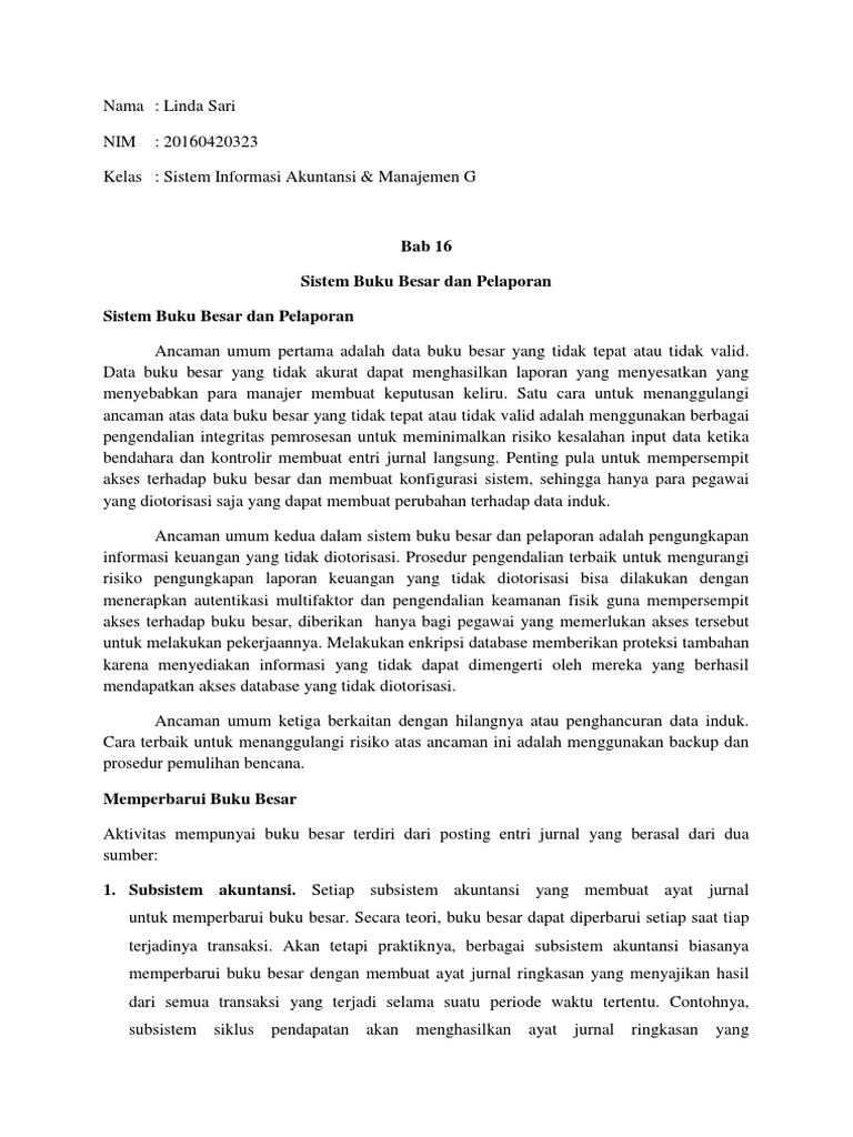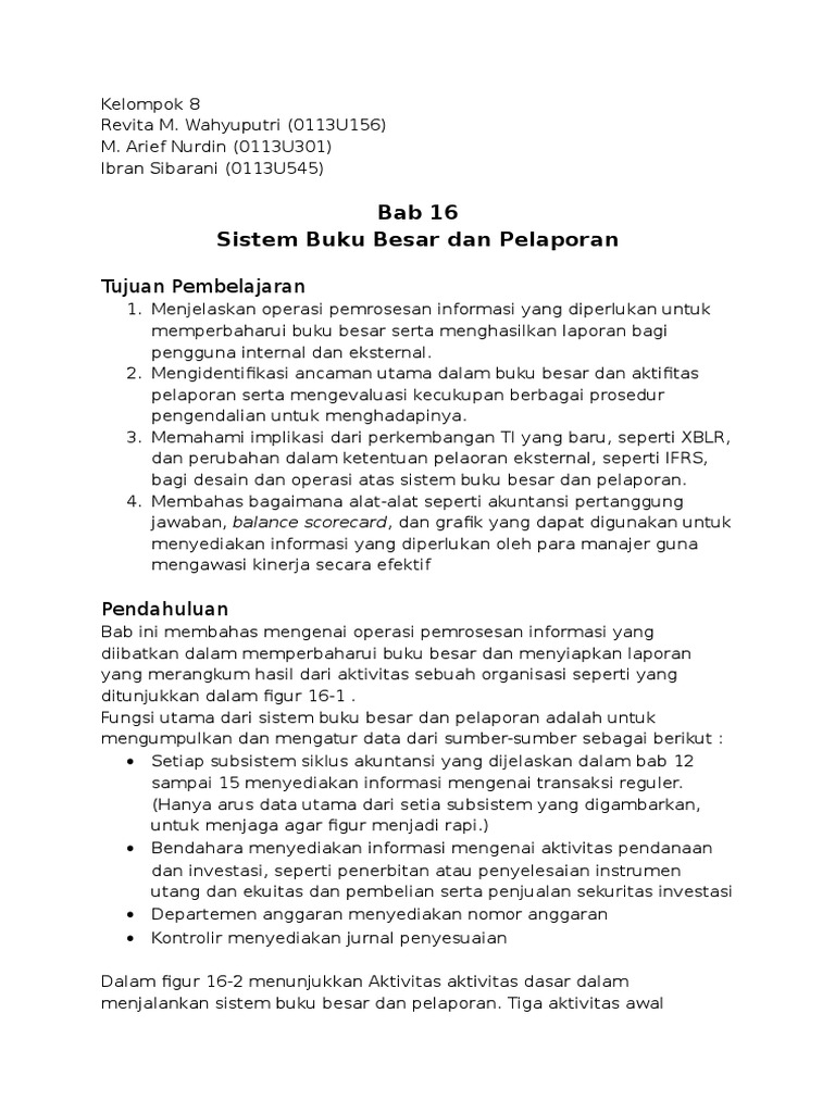 Bab 16: Sistem Buku Besar Dan Pelaporan
