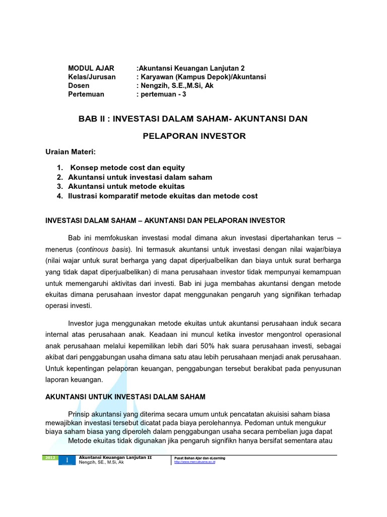 INVESTASI DALAM SAHAM - AKUNTANSI DAN PELAPORAN INVESTOR | Chello …