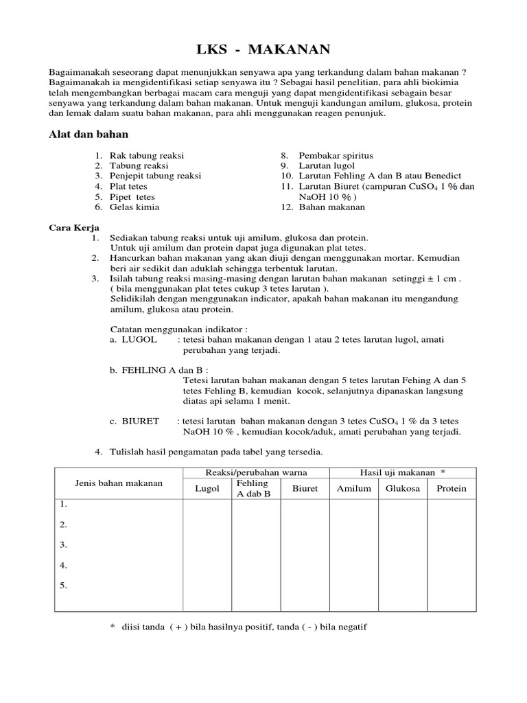 Uji Makanan dengan Lugol, Benedict, Biuret, Kertas Minyak - PDF Download Gratis