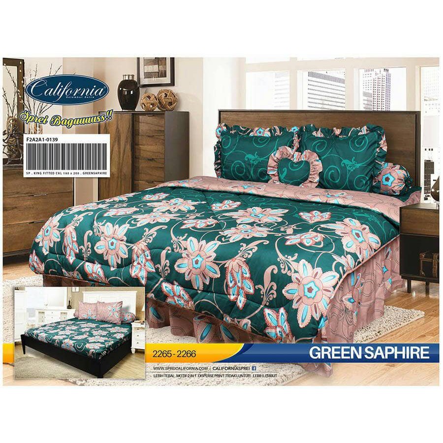 GROSIR SPREI #BEDCOVER SET CALIFORNIA RUMBAI KING 180X200 GREEN SAPHIRE/ BED COVER CALIFORNIA | Shopee Indonesia