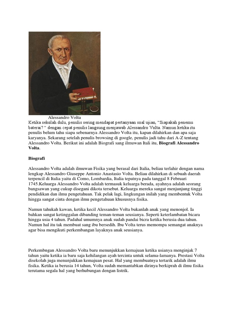 DOC) Biografi Alessandro Volta – Penemu Baterai | umi marhamah - Academia.edu