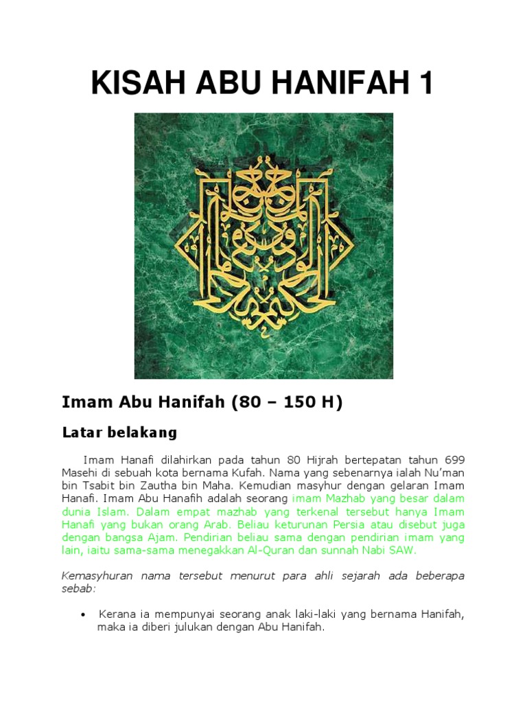 DOC) Biografi Singkat Imam Hanafi | Firyal Adibah - Academia.edu