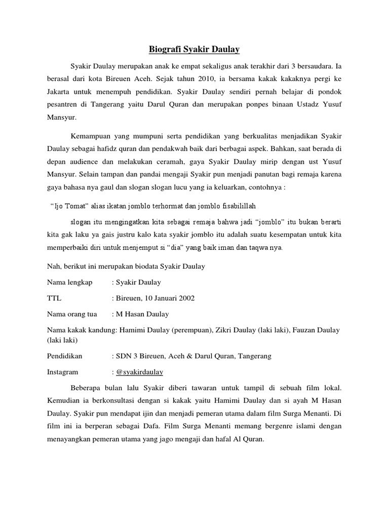 Contoh Biografi Diri Sendiri | Orang tua | Siswa | Guru | Tokoh Pahlawan