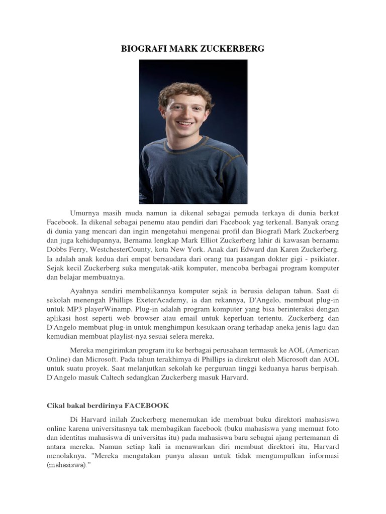Biografi Mark Zuckerberg Pendiri Facebook.com - Biografi Tokoh