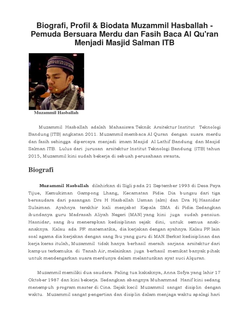 Biografi, Profil & Biodata Muzammil Hasballah - Pemuda Bersuara Merdu dan Fasih Baca Al Qu’ran Menjadi Masjid Salman ITB