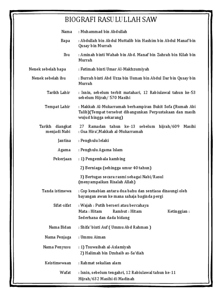 DOC) Biografi Nabi Muhammad SAW | Wafiqhah Abbas - Academia.edu