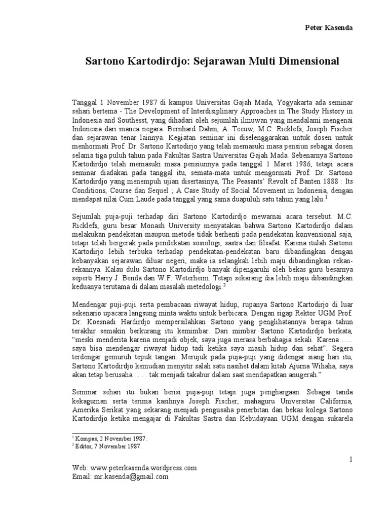 DOC) Sartono Kartodirdjo dan Terbentuknya Mazhab Bulak Sumur: Tinjauan Dalam Sejarah Historiografi Indonesia | Makrus Ali - Academia.edu