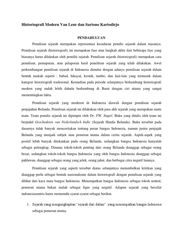 Historiografi Modern Van Leur Dan Sartono Kartodirjo