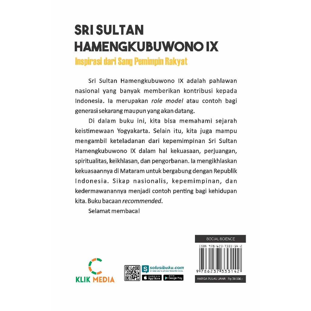 BUKU BIOGRAFI - SRI SULTAN HAMENGKUBUWONO: INSPIRASI SANG PEMIMPIN RAKYAT - C KLIK MEDIA | Shopee Indonesia