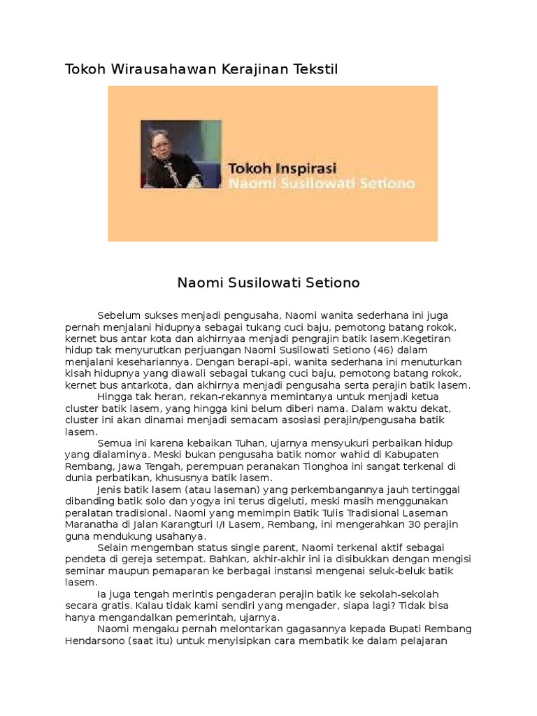 Profil Wirausahawan Sukses Di Bidang Tekstil