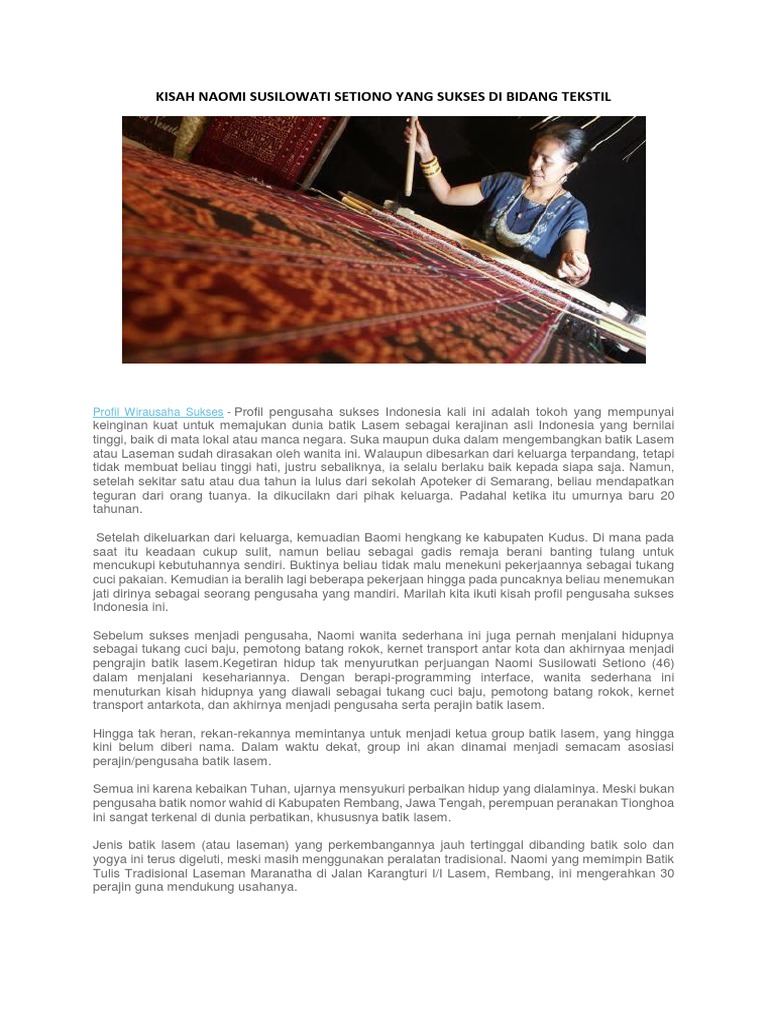Kisah Naomi Susilowati Setiono Yang Sukses Di Bidang Tekstil