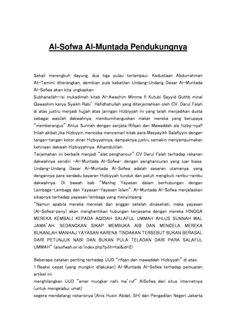 Al Sofwa Al Muntada Dan Pendukungnya