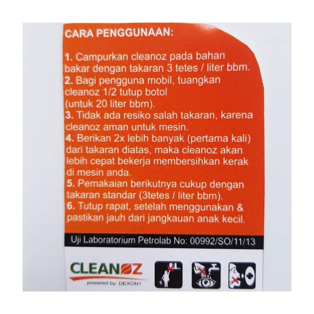 Jual Cleanoz cairan Pembersin Mesin / Penghemat BBM / No: 0092/SO/11/13 - Kab. Pasuruan - Alhamdulillah18 | Tokopedia