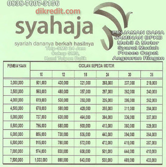 Daftar Tabel Angsuran Kredit Pinjaman Jaminan BPKB Terbaru | Bpkb-Ku