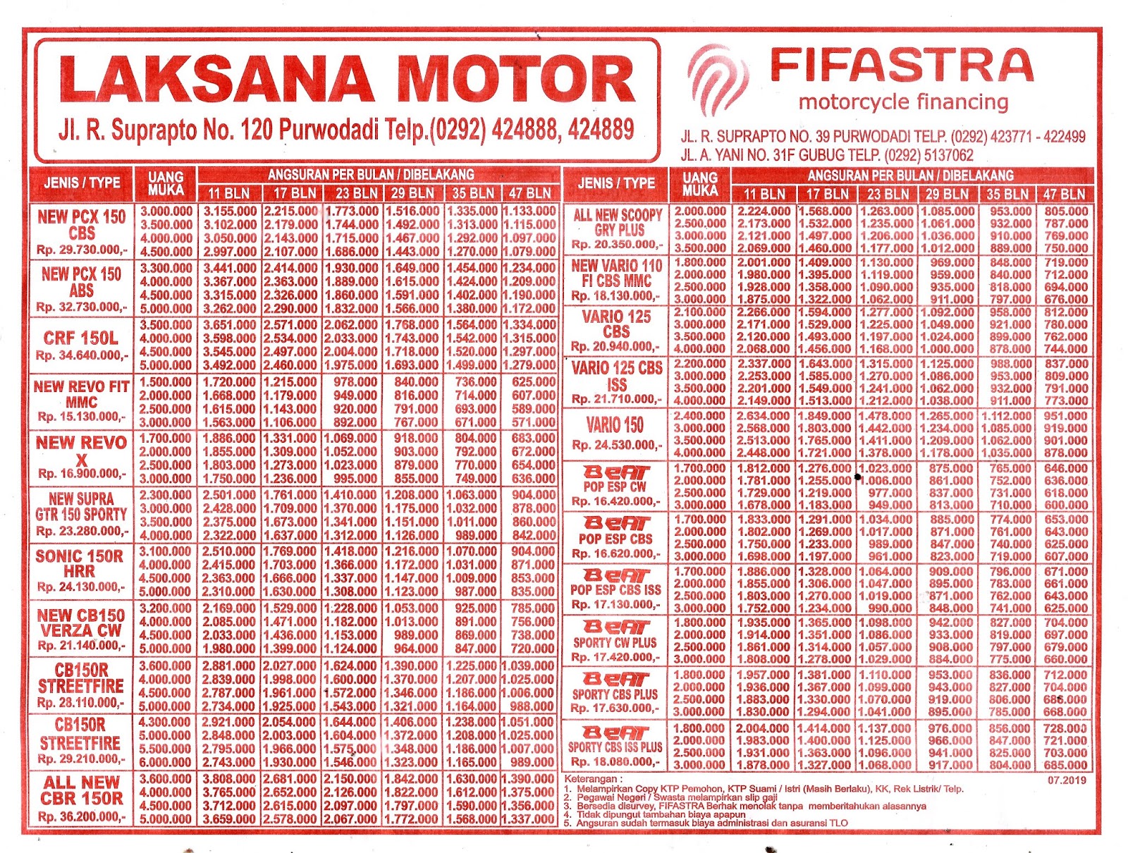 LAKSANA MOTOR HONDA - Dealer Purwodadi Grobogan - Brosur Harga Kredit Kes 2019 2020 -Promo