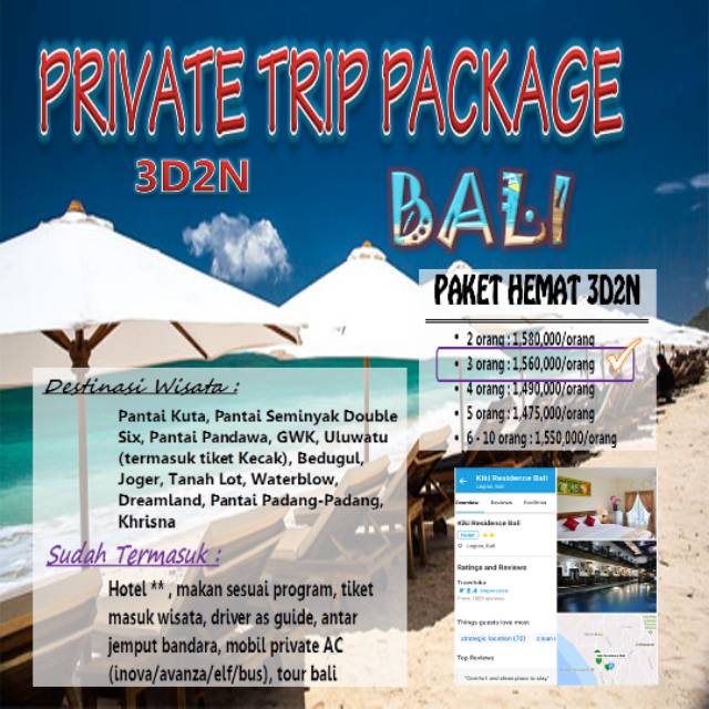 Private tour Bali 3D2N untuk 3 peserta | Shopee Indonesia