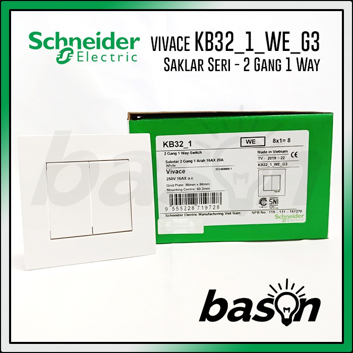 SCHNEIDER Vivace 2 Gang 1 Way Switch - Saklar 2 Tombol 1 Arah | Shopee Indonesia