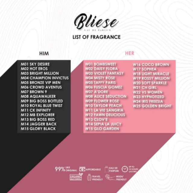 TAHAN LEBIH 12 JAM] Bliese Body Perfume FOR HIM 30 ML. EDP Tahan Lama, 99% like ori, mesra wuduk & alkohol organik. | Shopee Singapore
