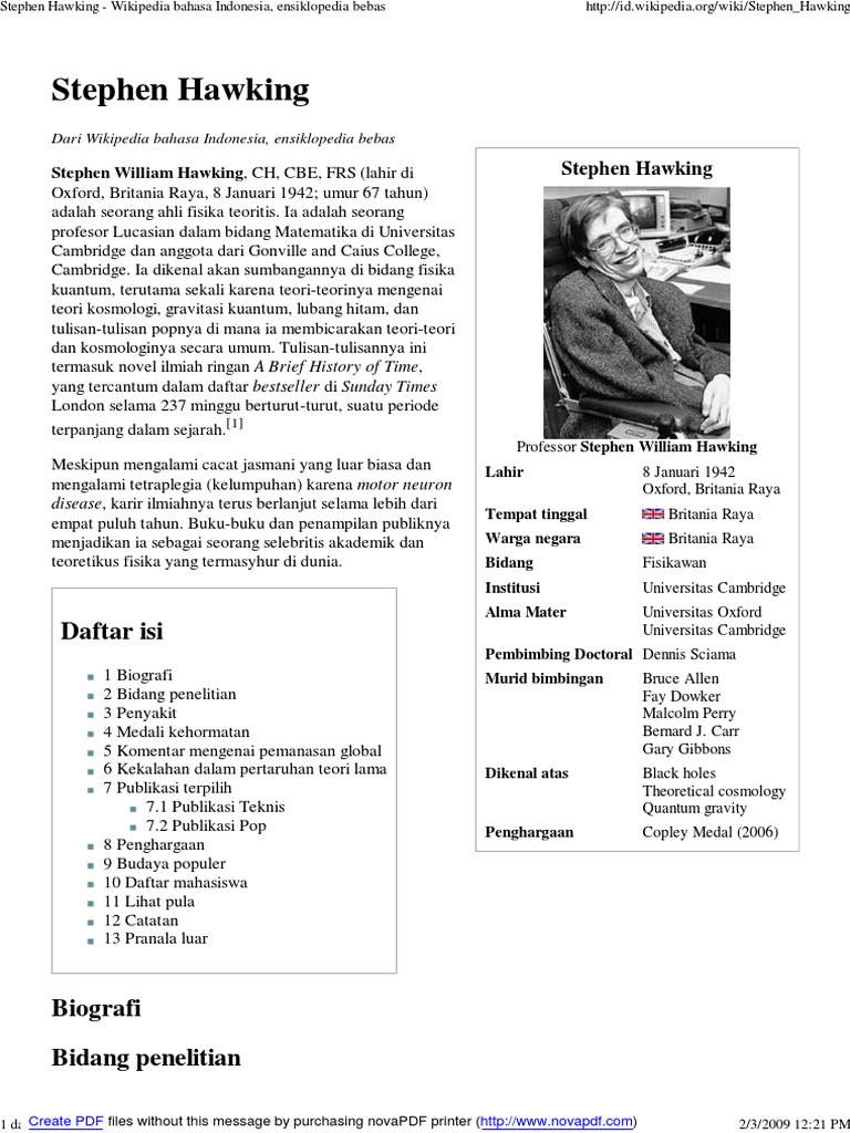 Stephen Hawking - Wikipedia bahasa Indonesia, ensiklopedia bebas