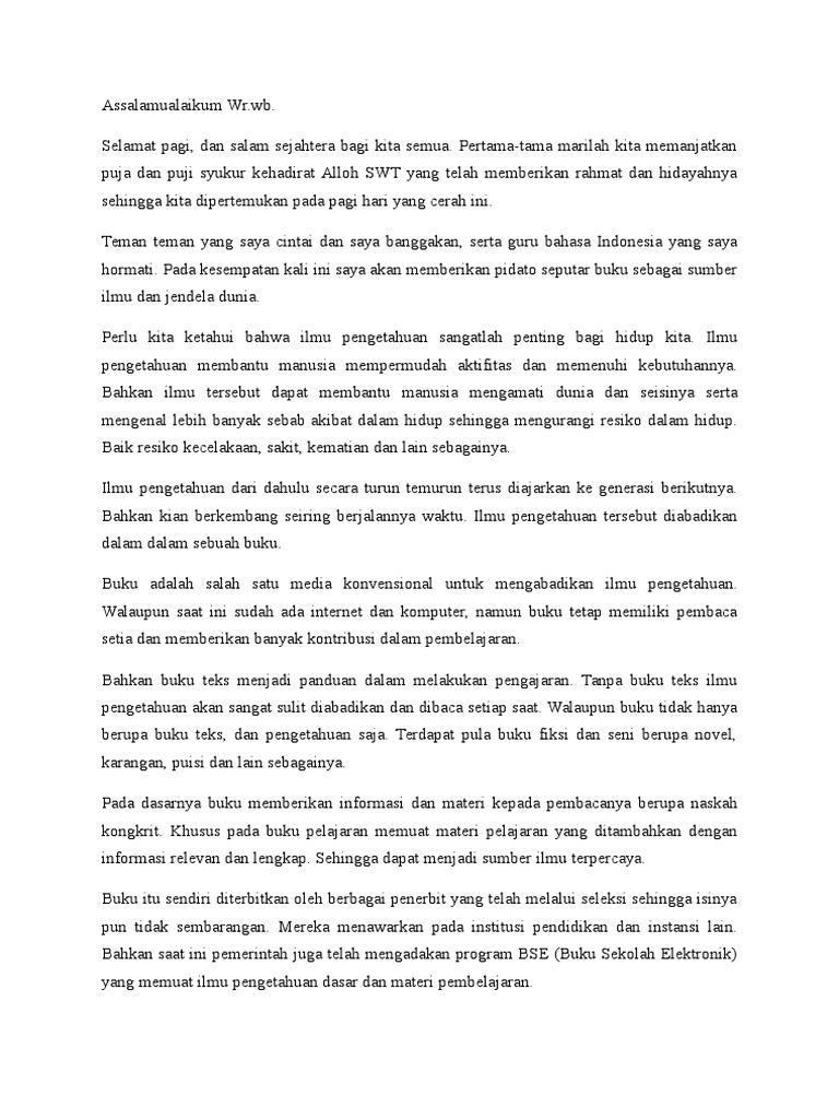 Pidato Bertema Buku Sebagai Jendela Dunia