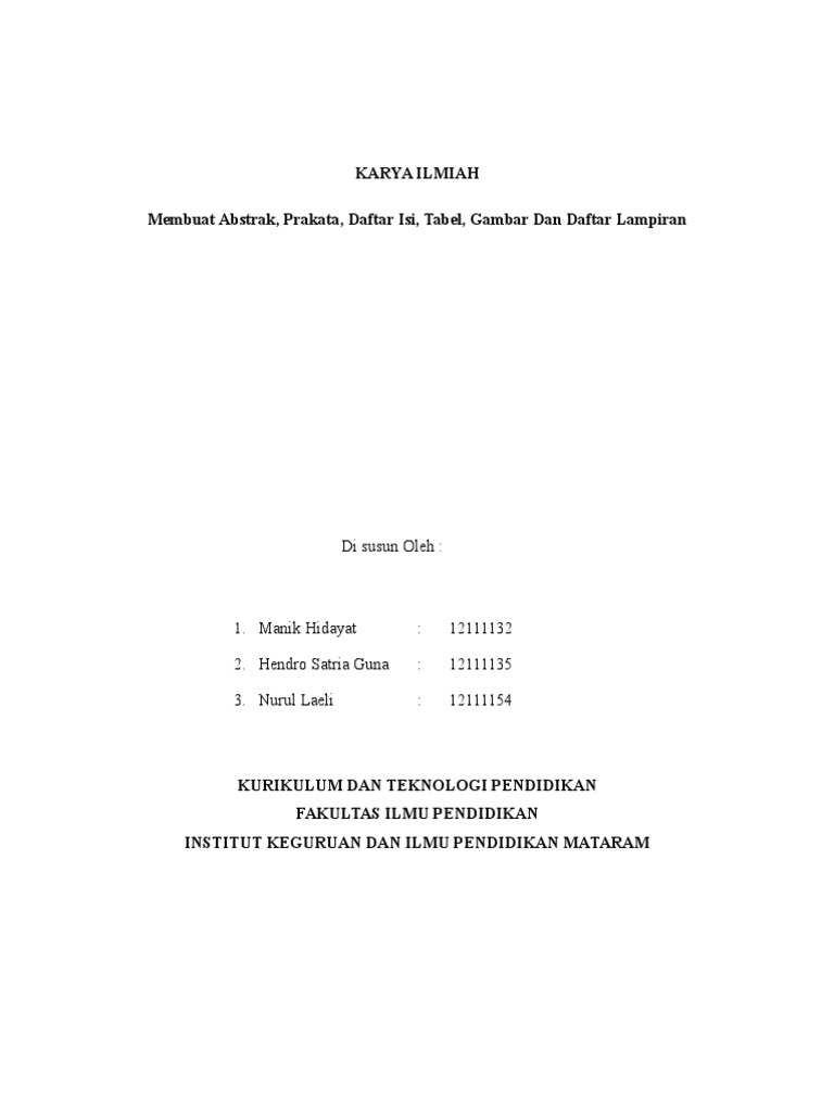 Makalah Karya Ilmiah Membuat Abstrak, Prakata, Daftar Isi, Tabel, Gambar Dan Daftar Lampiran