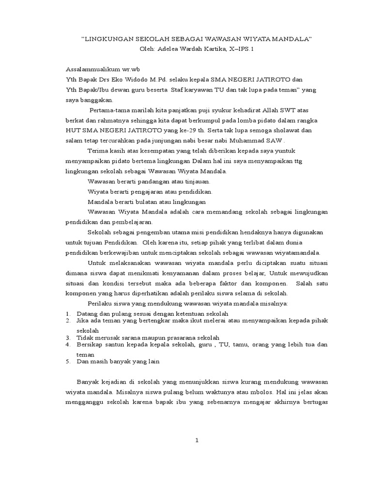 DOC) Contoh pidato singkat tentang lingkungan sekolah | Dhlie Razor - Academia.edu