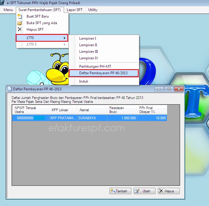 Cara Input Pembayaran PP 46 Tahun 2013 di eSPT Tahunan PPh OP 1770 …