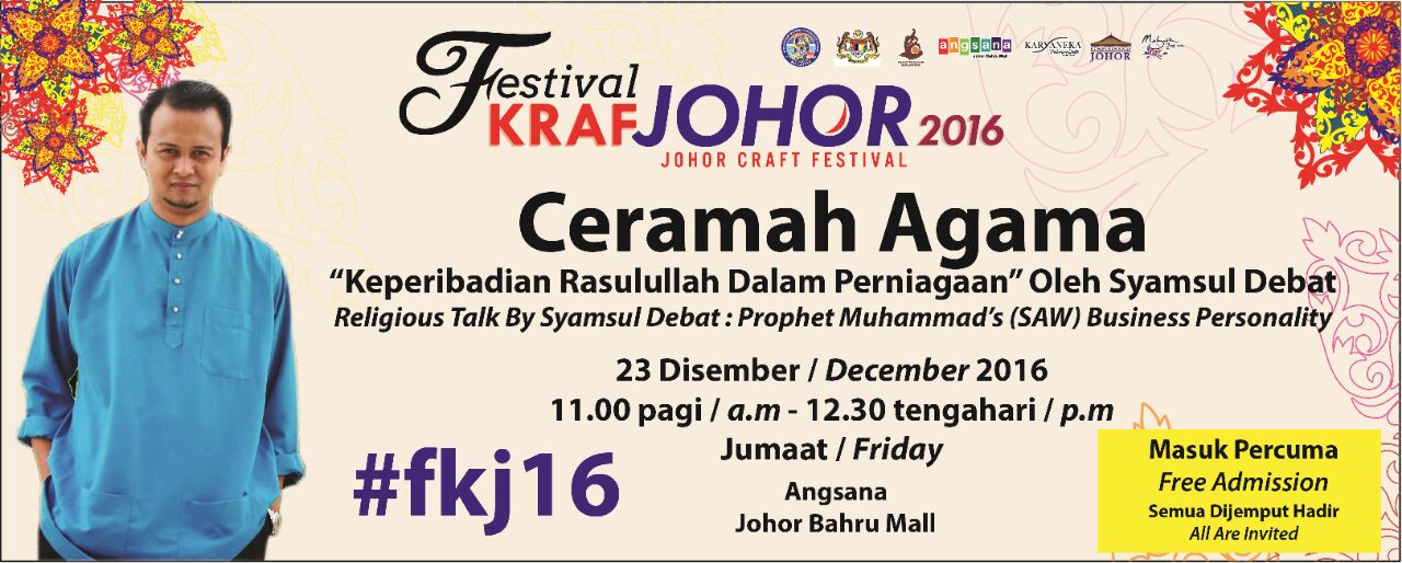 JohorEvent on Twitter: “Ceramah Agama oleh Ustaz Syamsul Debat | 23/12/16 (Jumaat) | 11AM- 12.30PM | Padang A, Plaza Angsana | Event oleh Festival Kraf Johor… https://t.co/8pkHjI689G”