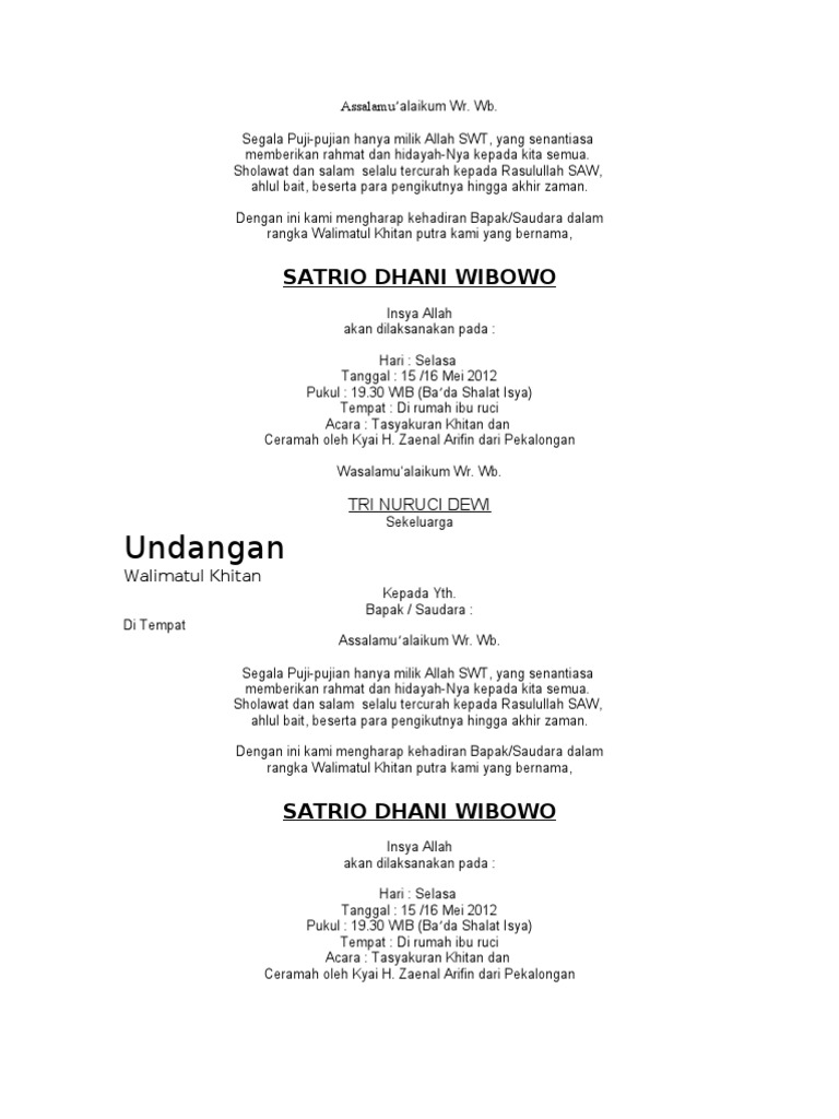 Contoh Surat Undangan Walimatul Khitan | Belajar Office
