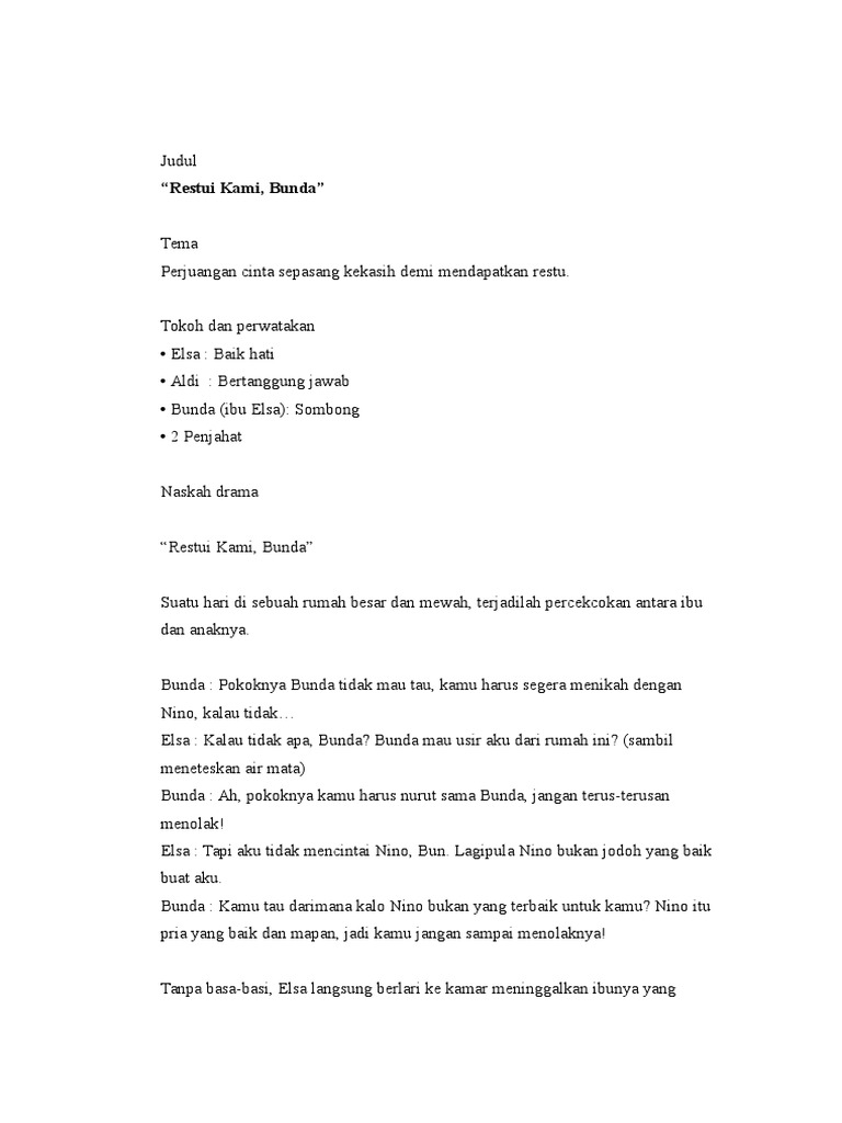 DOC) Contoh Naskah Drama (Balas Budi Burung Bangau) | Daras Resviandira - Academia.edu