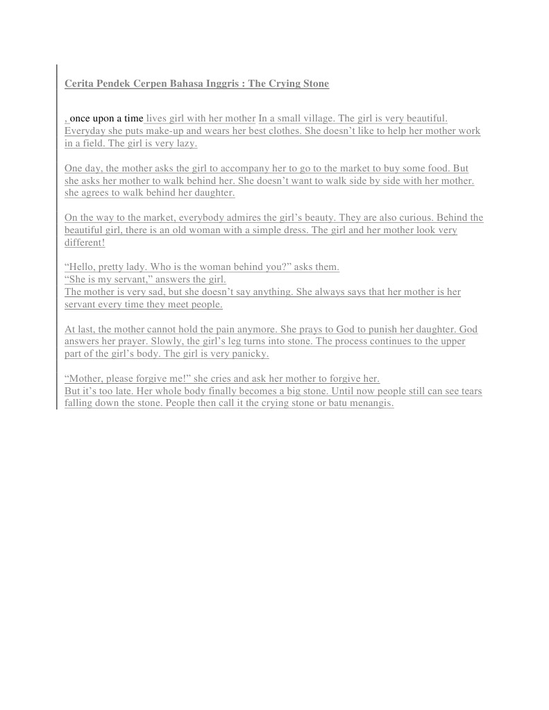 Contoh Cerpen Bahasa Inggris Dan Artinya - Barisan Contoh