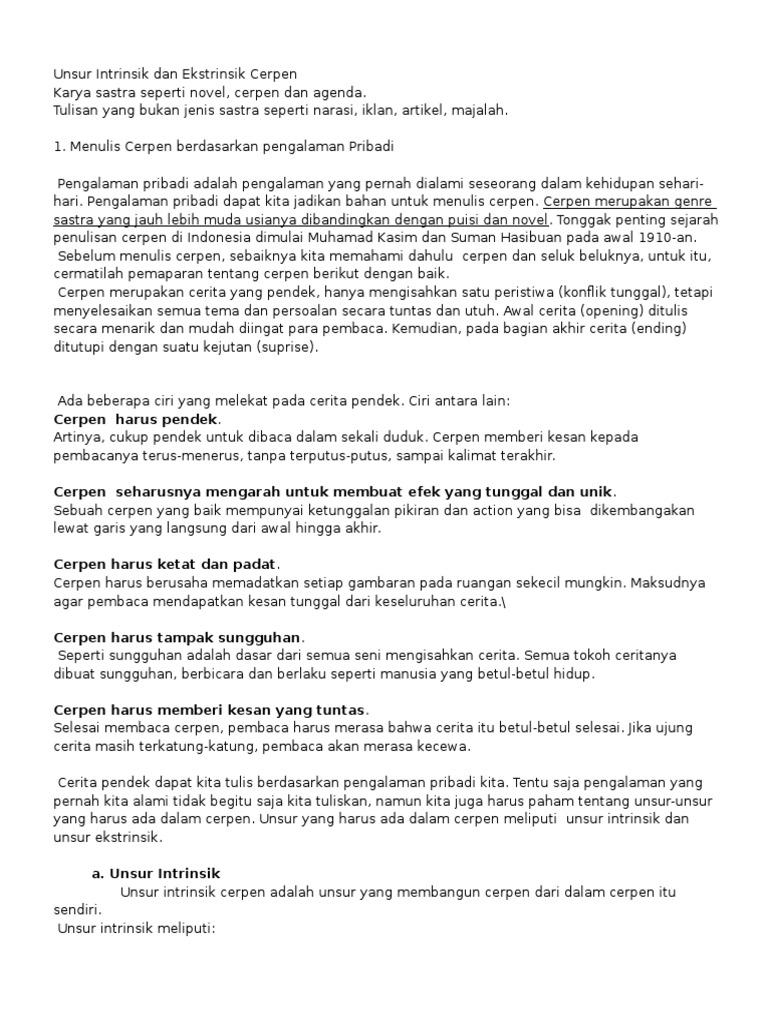 DOC) Unsur Intrinsik dan Ekstrinsik Cerpen | Om Kita - Academia.edu