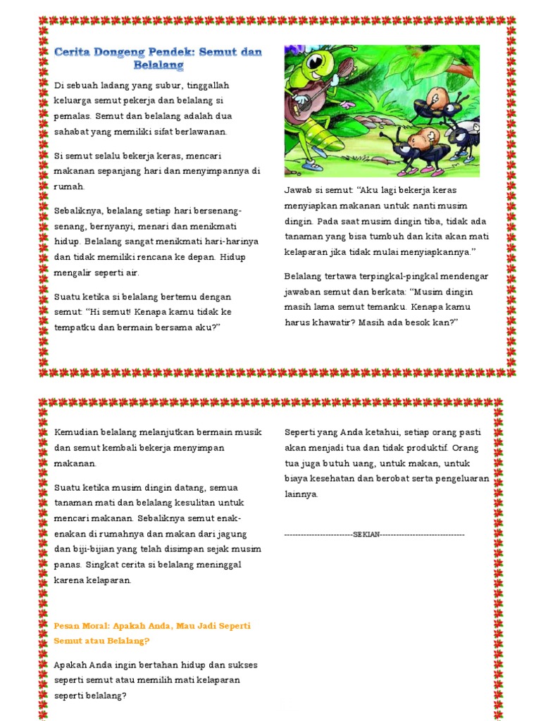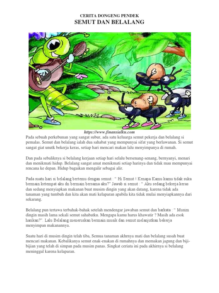 PDF) CERPEN DONGENG SEMUT RAJIN DAN BELALANG PEMALAS | Rahardjo Widiarto - Academia.edu