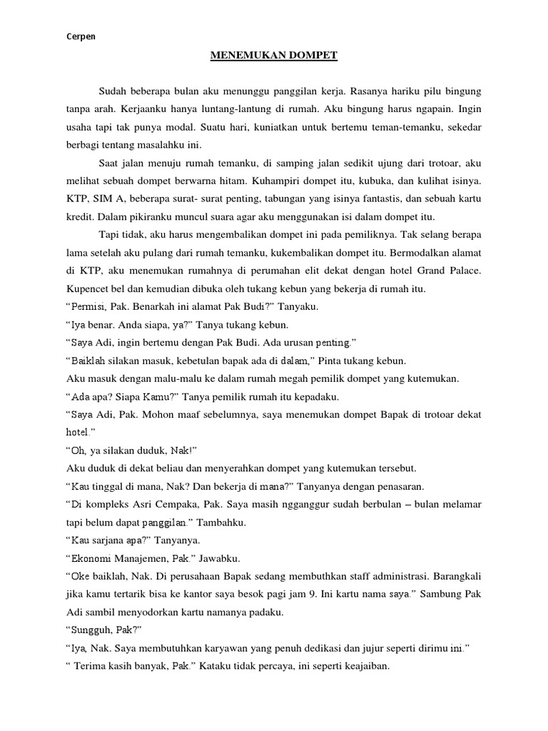 Contoh Cerpen Menemukan Dompet Dan Unsur Intrinsiknya - Koleksi Rina
