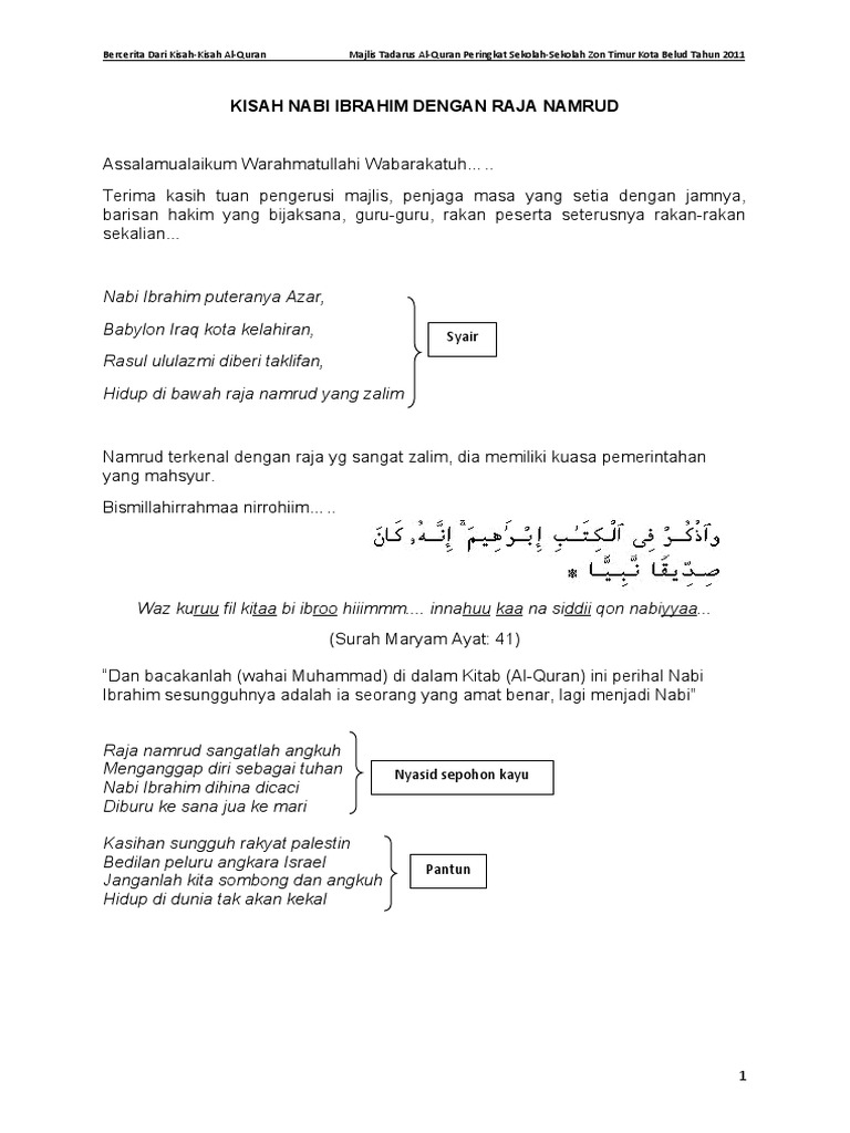 Teks Bercerita MTQ 2011 Nabi Ibrahim dan Raja Namrud