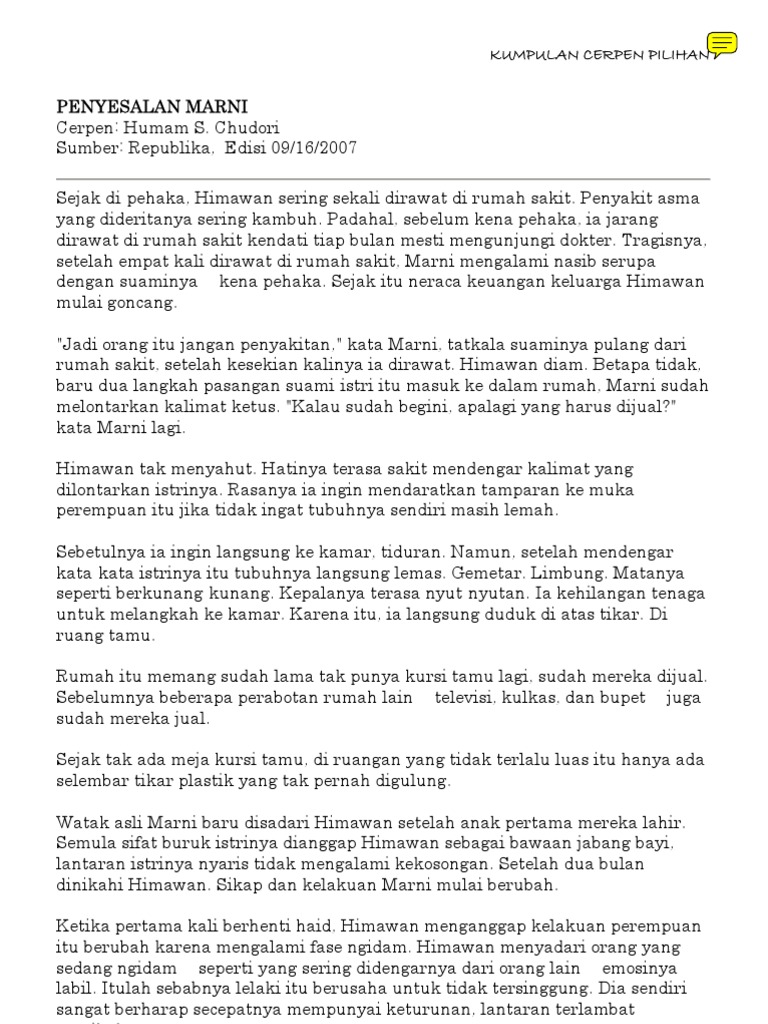 DOC) ANALISIS CERPEN “PELAJARAN MENGARANG” KARYA SENO GUMIRA …