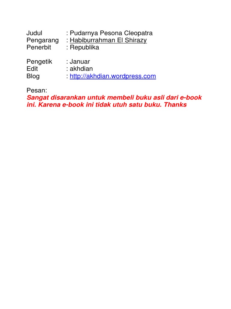 PDF) Novel: Pudarnya Pesona Cleopatra | Isma Hanifa Ma’ruf - Academia.edu